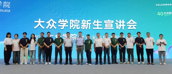 在宣讲会上,校党委委员、教务处处长、大众学院院长王晓峰介绍了大众学院的发展历程、建设成果以及人才培养模式,并讲解了智能制造工程、数据科学与大数据技术、新能源材料与器件三个“双元制”专业的学科建设情况。大众中国学习与发展中心文化及人力资源沟通部高级总监娄屹介绍了大众汽车的企业规模、产业基地、研发中心、企业文化等。大众汽车(安徽)有限公司首席人力资源官邵剑介绍了大众汽车在合肥的发展历程以及发展远景规划。大众学院学生代表陈政扬、熊文泽和程梦雪分享了学习生活感受,校友赵飞洋分享了在大众安徽的工作经历。大众学院直属党支部书记宣跃文和大众中国学习与发展中心负责人潘欣共同为同学们介绍了招生计划、参选条件、选拔流程和报名方式,并逐一解答了新生的疑问。宣讲会由大众学院2022级学生薛五恒、王诚信和2023级学生余文乐、许媛翕主持。
