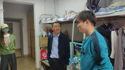 为落实学校关于开展秋冬季学生安全提升专项行动的通知要求,排查学生宿舍安全隐患,促进学生宿舍形成良好的学习氛围,11月4日上午,语言文化与传媒学院党委书记储昭辉、党委副书记张爱萍及全体辅导员深入学生宿舍,了解学生学习及宿舍安全卫生情况。