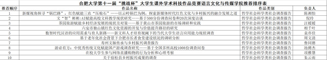 语言文化与传媒学院“挑战杯”大学生课外学术科技作品推荐顺序公示