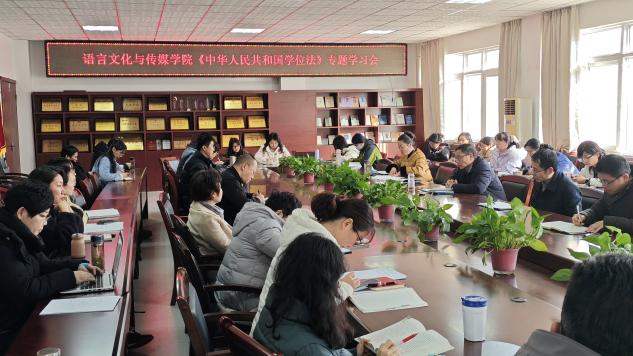 2025年2月18日下午,语言文化与传媒学院《中华人民共和国学位法》专题学习会在五栋二楼会议室举行。会议由查金萍副院长主持,带领全体教职工共同学习《学位法》相关内容。本次会议重点围绕《学位法》的立法背景、核心条款及实施路径展开,特别是对“学位授予条件”“学位质量保障”等议题进行了深入对比学习与政策解读。