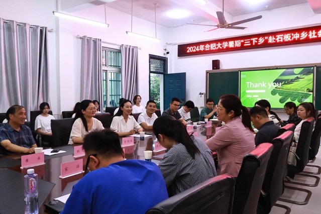 会议伊始,由学生代表张金涵对语言文化与传媒学院暑期三下乡社会实践团队各部门工作内容及成果进行展示汇报。随后,领导们就高校与地方政府之间在大学生社会实践活动方面的合作情况进行交流探讨。领导们建议建设常态高效的合作机制,这种合作模式包括提供志愿服务平台,涵盖了高校组织“三下乡”等活动,帮助大学生增强实践能力和就业竞争力。强调了实践活动在促进学生学习和成长,促进乡村建设、增强青年社会责任感及推动人才回乡等方面的重要作用。此外,地方通过引入大学生参与支教等活动,不仅为农村学生的教育提供助力,也为大学生提供了宝贵的社会实践经验。最后双方交流讨论,提出建立长期合作关系、共同培养人才的构想。