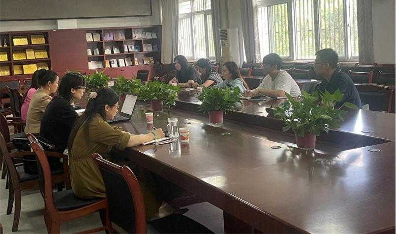 调研交流会在热烈友好的氛围中拉开帷幕。查金萍副院长首先对陈雨璇主任一行的到来表示热烈欢迎,并简要介绍了我院的基本情况、办学特色以及近年来在教学、科研等方面取得的成绩。随后,双方就学科建设、专业设置、课程体系、师资队伍建设等议题展开了深入的交流与探讨。新闻与传播专业硕士点负责人郭静详细介绍了在新闻传播学建设中的经验与成果,分享了在人才培养模式创新、实践教学环节强化等方面的具体做法。阜阳师范大学文学院的老师们也介绍了他们在相关领域的探索与实践,双方在交流中相互启发、共同进步。