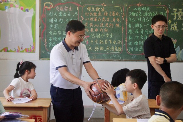 领导们为石板冲的孩子们带来“暖心礼包”:篮球、乒乓球拍、乒乓球等体育器材。孩子们接过礼物,脸上洋溢着惊喜与灿烂的笑容。领导们亲切地与孩子们交流,关切地询问他们的学习生活情况,并鼓励他们珍惜时光、勤奋学习、强健体魄、全面发展。一份份实用的礼物,一声声温暖的叮咛,传递的不仅是物质上的支持,更是对乡村学子未来发展的殷切期望和精神鼓舞。这份承载着爱心与期许的慰问,不仅改善了孩子们的学习条件,也极大地丰富了他们的课余文体生活,为梦想插上了翅膀。