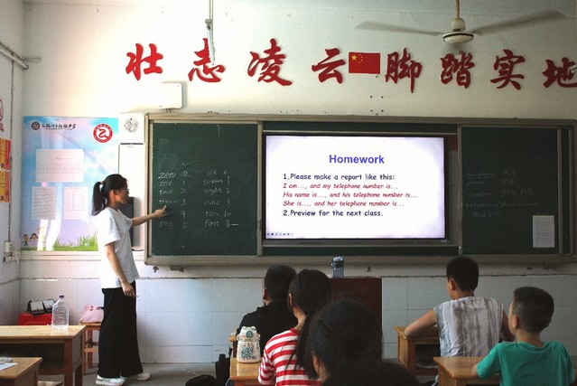 7月5日上午9:00,石板冲乡初级中学的教室中,日韩欧美福利视频_黑人巨大人精品欧美三区_欧美成人另类人妖_欧美在线精品一区二区三区_欧美一区二区三区性视频_日韩精品欧美视频_性欧美极品xxxx欧美一区二区语言文化与传媒学院暑期三下乡实践团队教学组成员甘亚男、方妍化身语言引航者,为乡村孩子开启沉浸式语言探索之旅。