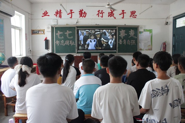 10:00,光影回溯历史。教室内,《七·七事变》的枪炮声穿透时空——卢沟桥上爱国将士的浴血抗争与普通民众的不屈脊梁,让书本上的历史在银幕前重现其波澜壮阔。孩子们屏息凝神,稚嫩的目光在民族危亡的沉重影像中闪烁着坚毅的星火。这堂生动的影史课传递的不仅是历史事实,更是深植于血脉的民族精神与时代责任的无声呼唤。