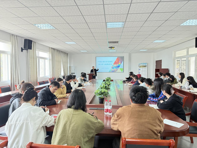 为深入学习习近平新时代中国特色社会主义思想,全面贯彻落实党的二十大和二十届二中、三中全会精神,准确把握当前经济形势,提升党员师生服务国家战略的使命担当,4月2日下午旅游与会展学院院长宋玉军以“中国宏观经济发展形势分析与趋势研判为题,为全院学生党员讲授专题党课。