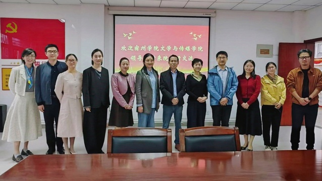 丁增武对李月云一行的到来表示欢迎。查金萍介绍了学院的基本情况,尤其是在学科建设、人才培养、科研团队方面的特色与成果。随后,双方围绕专业硕士点建设,汉语言文学、新闻学和网络与新媒体专业本科生培养,微专业建设以及党建与学生工作等方面展开了深入交流。