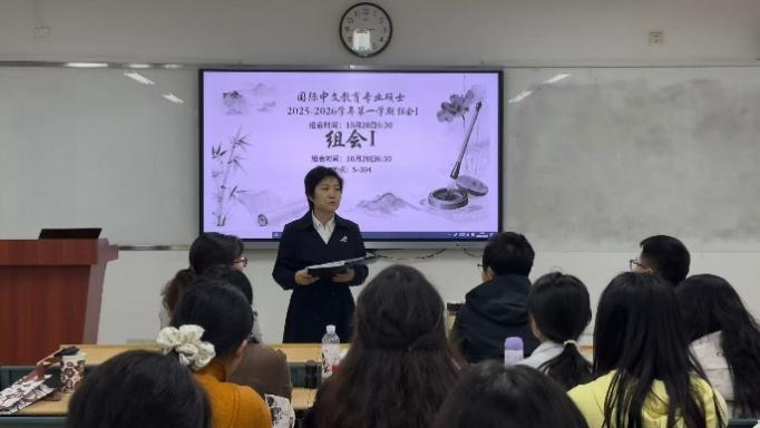 2025年10月28日晚上6:30,25级国际中文教育专业硕士研究生在一期5-304教室成功举办了“融新工坊”首次组会。
