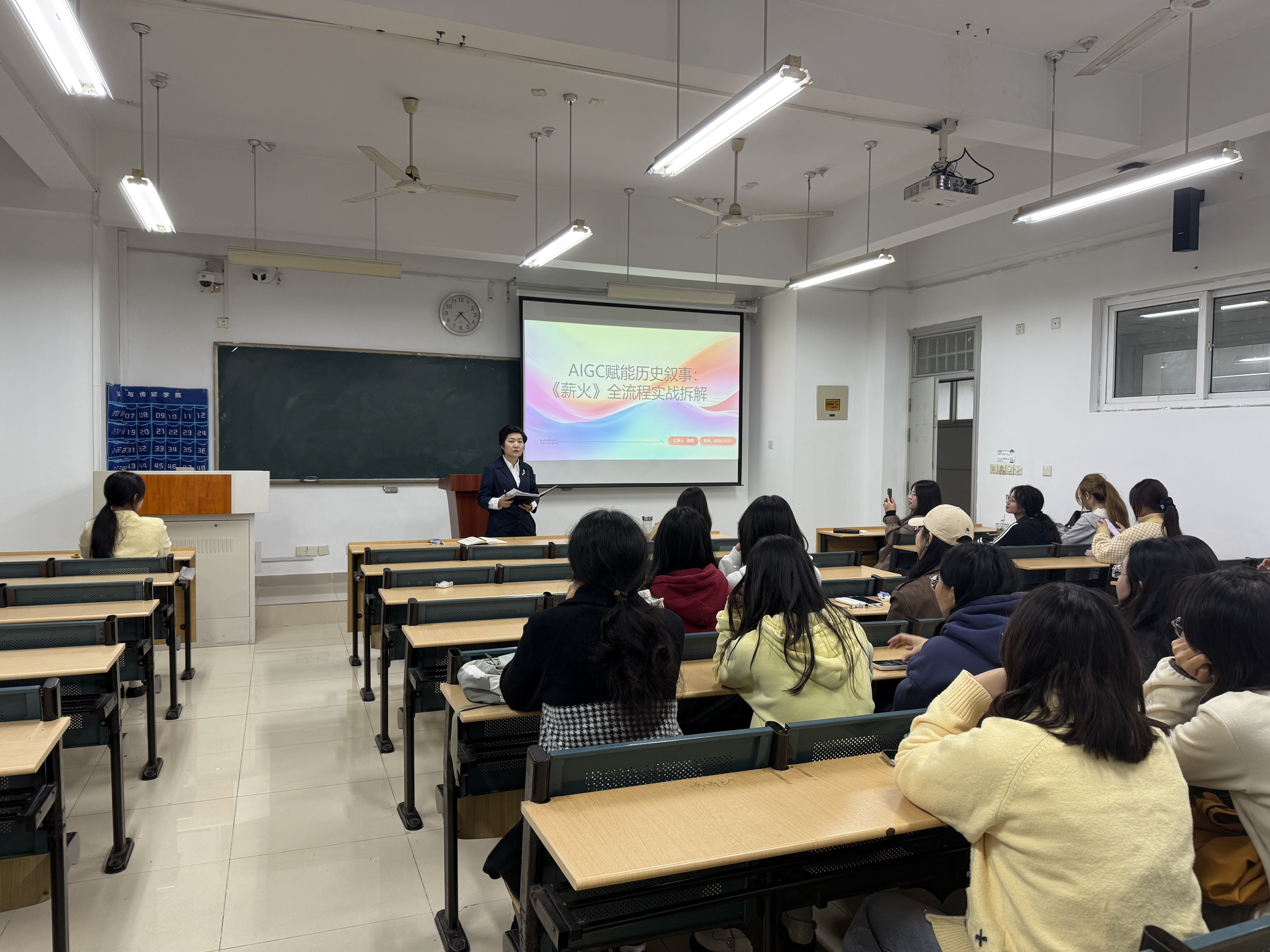 为探索人工智能技术与人文叙事的深度融合,推动新闻传播学科创新实践,10月27日晚6:30,由日韩欧美福利视频_黑人巨大人精品欧美三区_欧美成人另类人妖_欧美在线精品一区二区三区_欧美一区二区三区性视频_日韩精品欧美视频_性欧美极品xxxx欧美一区二区文化与旅游学院新闻与传播硕士学位点主办的“新传研行系列新传创翼营”专题活动在日韩欧美福利视频_黑人巨大人精品欧美三区_欧美成人另类人妖_欧美在线精品一区二区三区_欧美一区二区三区性视频_日韩精品欧美视频_性欧美极品xxxx欧美一区二区一期5-306教室举行。本次活动以“AI赋能历史文化叙事——日韩欧美福利视频_黑人巨大人精品欧美三区_欧美成人另类人妖_欧美在线精品一区二区三区_欧美一区二区三区性视频_日韩精品欧美视频_性欧美极品xxxx欧美一区二区《薪火》AI短视频全流程实战解析”为主题,由2024级新闻与传播专业学生魏琪担任主讲,学院副院长张体云教授、新闻与传播硕士学位点负责人郭静、网络与新媒体专业负责人王书川及《薪火》短视频总导演陈丽君博士出席,学院三十余名硕士研究生参与交流。