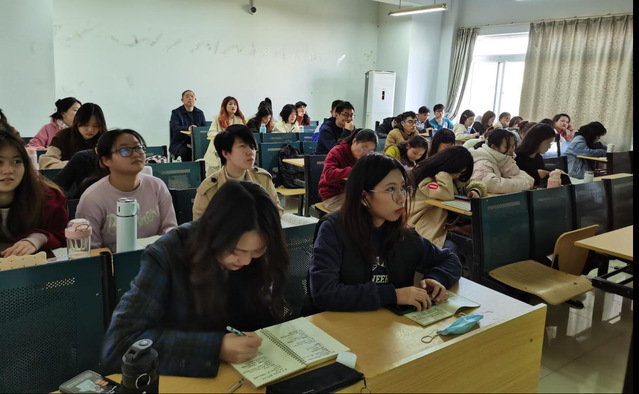 课堂上,文传学院党委书记董承军认真聆听记录教师授课内容,观察学生课堂反应,另一边,文传学院副院长杨庆国对班级进行巡视督察,同样详细记录了师生的课堂表现,并于课后及时对学生听课时的不良习惯提出了改进意见。