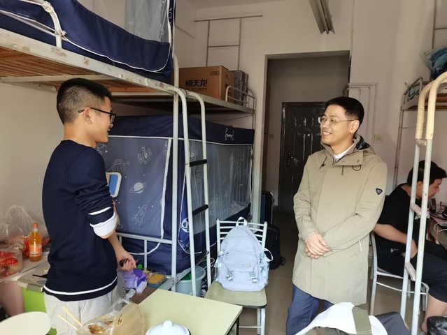 院党委副书记张爱萍带领辅导员刘政和柳守志查看了竹苑18栋女生宿舍。副院长殷明明带领辅导员顾盼盼查看了香怡社区男生宿舍。进入宿舍后,老师们首先了解宿舍是否存在安全隐患,再者查看同学们的寝室整洁状况;老师们亲切地与同学们交谈,关心了解同学们最近的学习和生活情况,并且叮嘱同学们要注意保持寝室卫生干净整洁,注重整体生活环境。