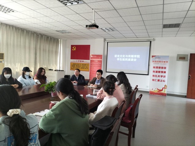 为了更好地开展学生组织工作,推动学生会等组织的高质量发展。3月28日中午十二点十分,语言文化与传媒学院在一区善思楼C座二楼会议室召开了语言文化与传媒学院学生组织座谈会。此次会议由语言文化与传媒学院团委负责人刘政主持,党委书记储昭辉出席,学生会、新媒体中心、志愿者协会以及艺术团等组织的学生骨干参加。