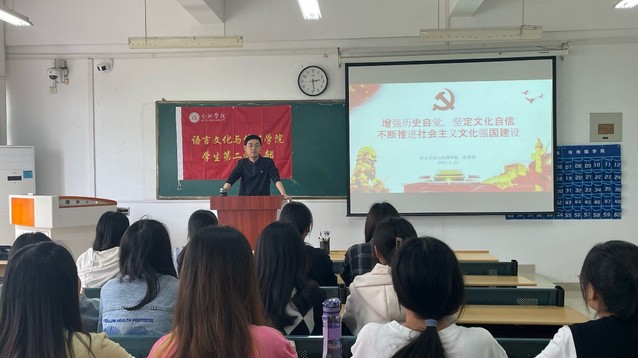 为深入学习贯彻习近平新时代中国特色社会主义思想,5月23日下午,语言文化与传媒学院在5栋305教室举行主题教育专题党课,党课由语言文化与传媒学院副院长殷明明讲授,学生第二党支部全体党员参加。