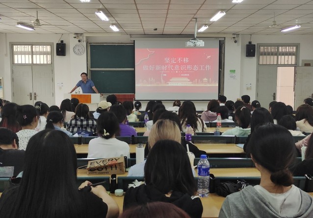 5月23日下午,语言文化与传媒学院2023年入党积极分子培训班第三次理论授课在一区善思楼A座101教室举行。本次党课由校党委委员、宣传(统战)部部长贾峰主讲,题目为“坚定不移做好新时代意识形态工作”,我院及旅游与会展学院本期入党积极分子培训班学员参加,党课由语言文化与传媒学院党委书记储昭辉主持。