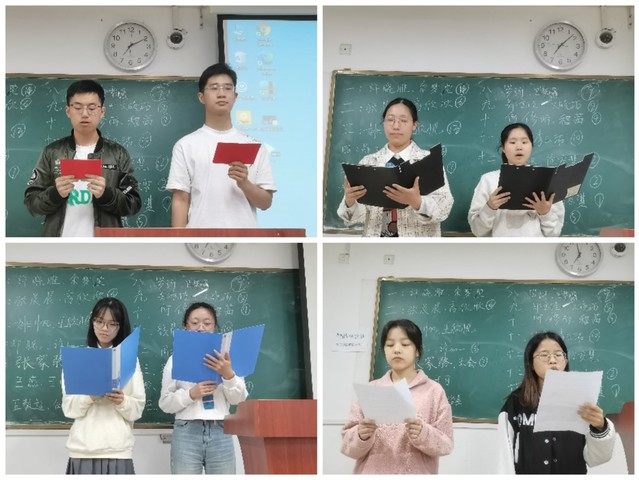 本次活动以比赛的形式呈现,党员们两人一组,每组3分钟的时间,自行节选《习近平新时代中国特色社会主义思想专题摘编》原文诵读。比赛开始,舒缓的背景音乐配合着党员同学们字正腔圆的声音,在309教室里激起声声回响,展示结束后党员同学们又当场进行了投票,选出自己认为今天表现最佳的同学。