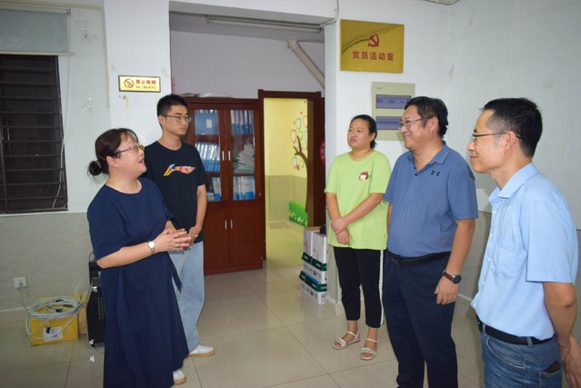 84日下午,合肥学院党委委员、宣传统战部部长贾峰,语言文化与传媒学院院长丁增武,党委副书记张爱萍,副院长殷明明,团委副书记刘政一行走入滨湖世纪社区看望我院暑期认知实习学生。