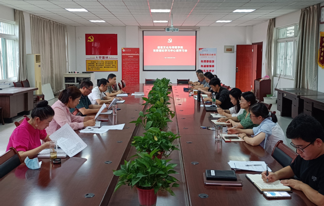 9月19日,语言文化与传媒学院在学院大会议室召开党委理论学习中心组学习会,学院党政领导班子成员、党委委员、纪委委员、科级干部及各党支部书记、各系(室)中心主任参加了会议,会议由院党委书记储昭辉主持。