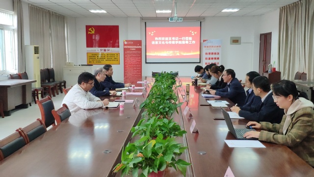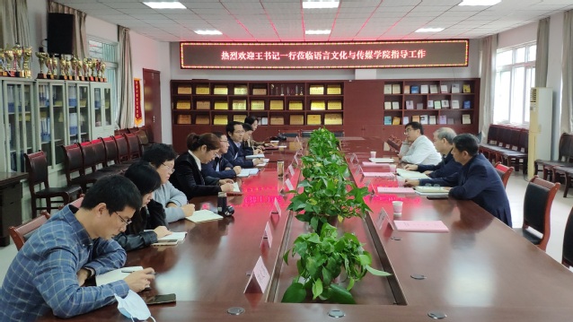 王其东在认真听取汇报后,对学院当前取得的成绩表示了肯定,对今后发展提出了希望与要求。他表示,语言文化与传媒学院近几年发展很快,学院党建、发展工作思路清晰、举措有力、成效明显,充分体现了领导班子的干事能力和进取精神。