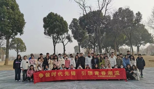 1229日下午2:00,语言文化与传媒学院23级汉语言文学专业,在语言文化与传媒学院党委副书记、23级汉语言文学专业辅导员张爱萍老师的指导下,在南艳湖公园举行“携手共进,共创美好”毅行活动,辅导员张爱萍,语言文化与传媒学院学工办主任顾盼盼,团委副书记、学生第一党支部书记刘政,学生第二党支部书记柳守志全程参与。