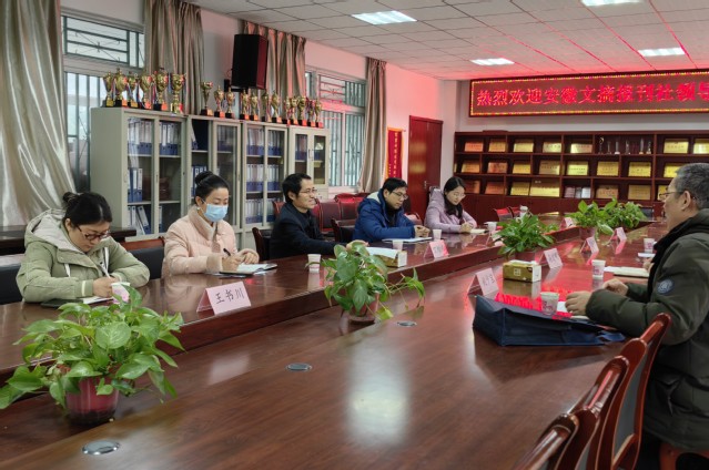 3月5日上午,安徽文摘报刊社与语言文化与传媒学院座谈交流活动在学院大会议室举行。安徽文摘报刊社社长高前明,安徽文摘报刊社副总编辑姚少宝、刘纯友,《新闻世界》编辑部副主任周蕾等一行4人来院参观交流。语言文化与传媒学院院长丁增武、副院长殷明明、副院长查金萍以及相关专业教师出席座谈会。会议由丁增武院长主持。