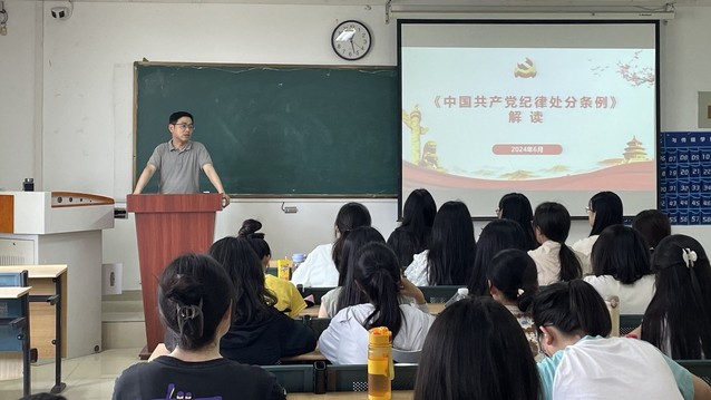 614日中午,语言文化与传媒学院学生第二党支部在5305教室举行了党纪学习教育专题党课。此次专题党课由语言文化与传媒学院副院长殷明明主讲,学生第二党支部全体党员参加。