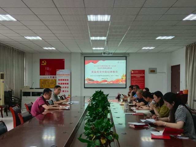 6月18日下午,语言文化与传媒学院教工第一党支部在学院大会议室举行了党纪学习教育专题党课。此次党课题为“重温党史中的纪律教育”,由院长丁增武主讲,教工第一党支部全体党员参加。