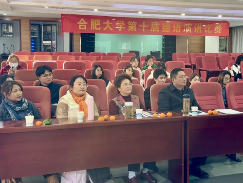 所有比赛选手演讲完毕后,吴书记对本次比赛进行总结,并对所有选手提出表扬。他表示,选手们的精彩表现不仅让他到了学生们逐渐进步的德语水平,也让他感受到了蓬勃的学习热情。同时,他也感谢安徽中德教育合作基金会对本次比赛的支持,并对我院学子和外国语学院未来的发展提出殷切期望。