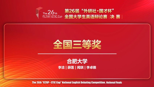 外国语学院一直致力于培养具有卓越语言能力和综合素质的优秀人才。此次在我院学子在全国大学生英语辩论赛中获得全国三等奖,是学院长期以来重视教学质量、注重学生综合素质培养的结果,也是老师和学生们共同努力的结晶。相信在未来,外国语学院将继续在各项赛事中取得优异成绩,为学院的发展增添更加辉煌的篇章。