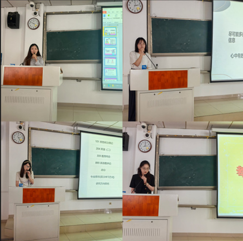 会上,八位上岸学子结合自身经历,从院校与专业选择、复习计划制定、备考心态调整等多个角度展开详细分享并对学弟学妹们进行了真诚地鼓励。其中,有同学强调了提前准备以及多渠道获取信息的重要性;有的则重点围绕复习规划、考前准备和心态调整三大要点展开讲解,介绍了快速浏览知识点法、思维导图学习法等高效复习方法还有的同学强调明确目标和保持积极心态的重要性,表示积极心态是成功关键她们慷慨无私的分享收获了阵阵掌声,大家纷纷表示,收获了满满的“干货”。