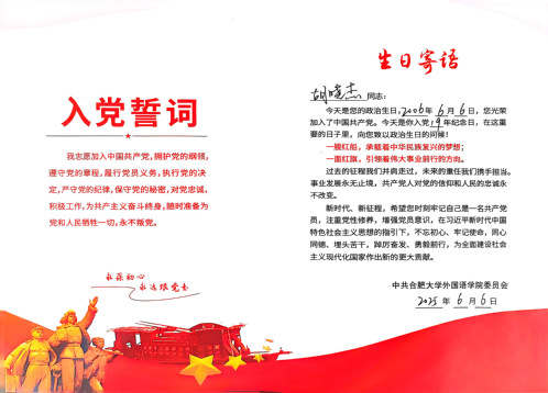为深入贯彻中央八项规定精神学习教育,切实加强党的作风建设,624日,外国语学院党委组织开展主题党日活动,为入党时间在6 至 7 月的师生党员过集体“政治生日”、重温入党誓词,推动学习教育走深走实