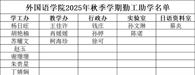 外国语学院2025年秋季学期勤工助学名单