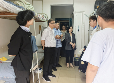 为切实做好国庆、中秋假期期间校园安全工作,传递学院人文关怀,9月28日下午,院党委书记罗会必、副院长曹昊(主持工作)、党委副书记夏丹青、学工办主任李发俊及新生辅导员一行深入走访宿舍,为学生送去节日的问候与殷切的关怀。