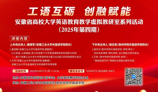 讲座通知 | 工语互砺,创融赋能——安徽省高校大学英语教育教学虚拟教研室系列活动(2025年第四期)