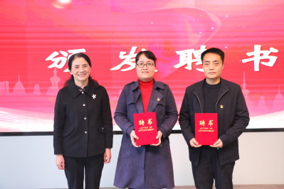 仪式现场,陈秀为逍遥津街道“巷导员”颁发劳动教育校外导师聘书。外国语学院与逍遥津街道签署劳动教育基地协议及社会实践基地协议。