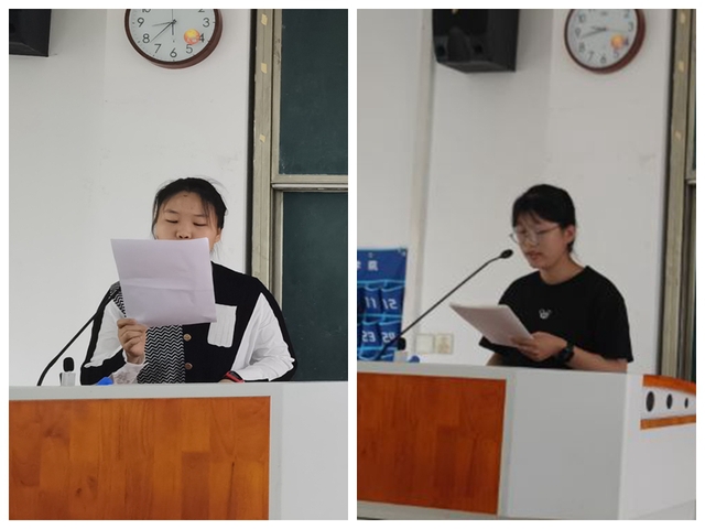 老生代表、19英语2班孙欣荣同学与新生们分享了她的经历与感触,并鼓励同学们扎实打好学科基础,同时多去勇敢尝试,参加各类学科竞赛等可以锻炼自己的活动,努力成长为一名具有中国立场、世界眼光、人类情怀的外院人。22英语2班王明慧同学作为新生代表发言,表示将用“吹尽黄沙始到金”的毅力,鼓足“直挂云帆济沧海”的勇气,乘风破浪,展现合院学子的风采。