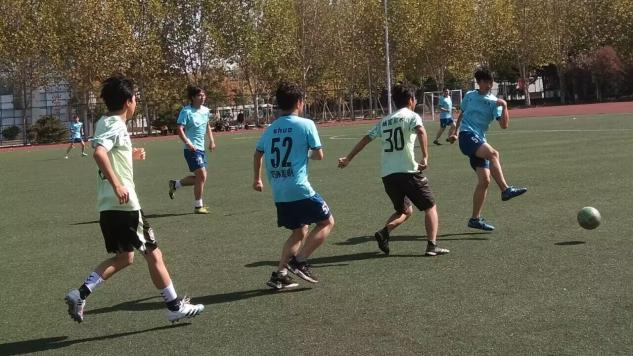 10月24日中午十二点,中外男足与设计男足齐聚二期操场开展了一场激烈的较量,最终以3比2的比分取得比赛胜利。