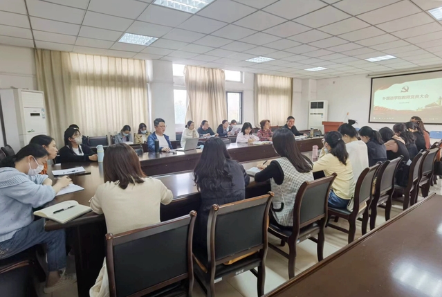 为深入学习宣传贯彻落实党的二十大精神,在全体教师党员中统一思想,凝聚共识,团结奋进,11月8日下午3时,外国语学院于8栋三楼会议室召开全体教师党员大会,院领导班子围绕深入学习宣传贯彻落实党的二十大精神讲授专题党课会议由院党委副书记吴孔宝主持。