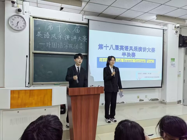 11月11日晚上六点半至九点,由外国语学院团委主办的第十八届英语风采演讲大赛半决赛在一期1栋101教室隆重举行。本次比赛分为英语专业和非英语专业两个赛道,邀请到黄紫瑶、徐慧、史文乐、朱燕妮等优秀学生代表担任评委。