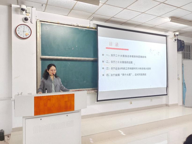 课程开始前,吴书记强调了学习党的二十大精神对于青年大学生的重要意义,在学员们热烈的掌声中,党课正式开始。苏教授二十大报告的总体框架、逻辑结构和主题,五年的工作总结和十年的伟大变革,统筹“两个大局”并应对风险挑战等方面进行了讲解。谈到如何理解党的二十大精神,苏教授强调,我们要深刻领悟“两个确立”的决定性意义,牢记“三个务必”,始终坚持“五个必由之路”。作为青年一代,更要把实现中华民族伟大复兴的重任担在肩膀上,为全面建设社会主义现代化国家作出新的更大贡献。