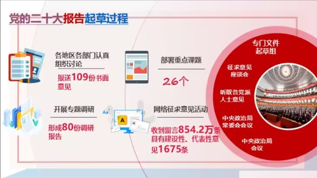 为了让学员们对党的二十大有更加全面的理解,金老师首先介绍了党代会的地位和功能。结合二十大相关主题视频,金丽老师讲解了党的二十大报告的起草过程,并详细叙述了二十大报告中提高人民生活品质、增进民生福祉的重大意义、目标与基本原则以及具体思路和对策措施。在积极参与金老师组织的线上互动过程中,各位培训班学员深入了解和体会了党的十八大以来我们国家取得的历史成就。
