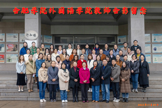 会前,外国语学院全体教师在校一期8号楼前集体合影。