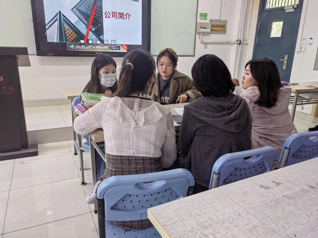 招聘会上,公司负责人详细介绍了公司基本概况、职员福利待遇及工作岗位基本要求等。现场,公司负责人针对学生感兴趣的问题进行了相关解答,讨论气氛热烈。
