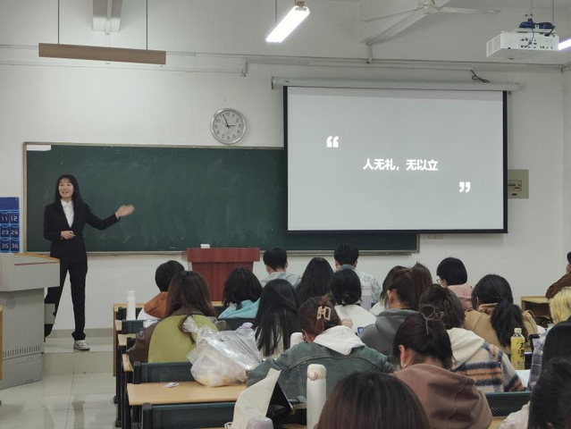 课程伊始,陈老师展示了一段综艺节目的面试视频,引出本次课程的主题。“人无礼,无以立”。陈老师主要围绕仪容与仪态、客户交往礼仪、工作场景礼仪、公共场所礼仪这四个方面,向各位同学详细地介绍了在不同场合应该注意的礼仪细节。同时,老师还从求职信息来源和简历拟写等方面,向大家提出了宝贵的建议。
