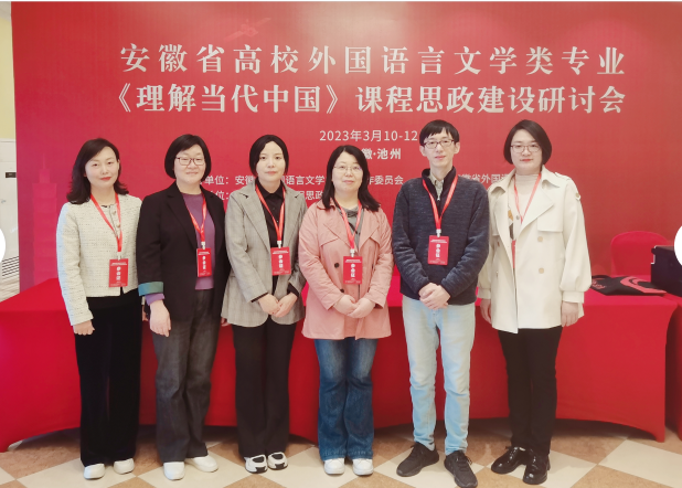 2022年3月10日到12日,外国语学院副院长李洁、外国语学院教学督导组组长汤琳老师、英语专业徐天戍老师、学院科研秘书朝鲜语专业宗艳艳老师、学院督导日语专业鲍德裕老师和德语专业黄新伟老师参加了安徽省高校外国语言文学类专业《理解当代中国》课程思政建设研讨会。