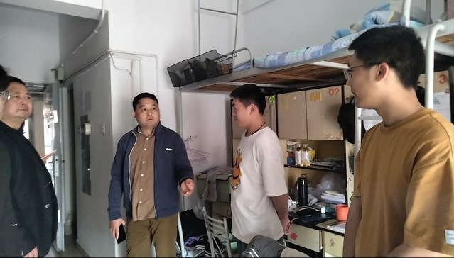 走访过程中,吴书记对学生宿舍的寝室卫生和安全隐患进行了排查。吴书记强调,在寝室要安全用电,严禁使用违规电器,希望寝室长能够负起责任,督促同学们爱护寝室环境,妥善保管贵重物品,共同营造良好的寝室环境。针对宿舍纪律问题,吴书记提醒,寝室是大学生生活和学习的主要场所,我们应该多室友交流学业,不自缚于眼下的困扰,树立宏大目标,创造和谐、积极的寝室文化,走出宿舍舒适区,走入教学学习区,形成你追我赶的浓厚学习氛围。最后,吴书记详细询问了同学们在日常学习、生活中遇到的问题并给予了一定的意见和建议。