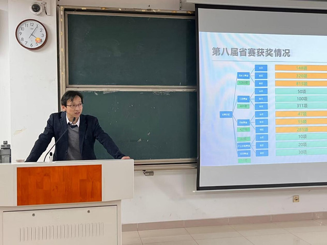孙虹处长首先对中国国际“互联网+”大学生创新创业大赛的历年获奖的基本情况进行了介绍,接着他又对大赛的要点和赛道的分类进行了详细解读。孙虹处长指出,该比赛包括高教主赛道、萌芽赛道、职业赛道、产业命题赛道和红旅赛道,由多学科交叉人才组成专业团队,进行项目的研究和推进。最后,孙虹处长选取往届国赛获奖作品作为示例,结合外语专业特点为参赛选手提供针对性指导。