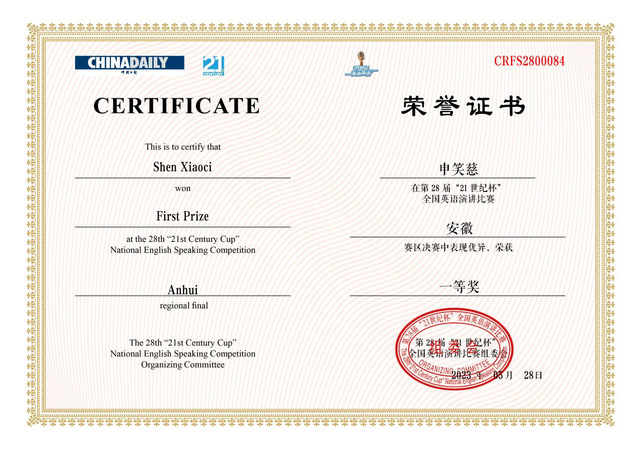 528日,由中国日报社主办、合肥工业大学承办的第二十八届21世纪杯全国英语演讲比赛(安徽赛区决赛)在合肥工业大学翡翠湖校区圆满落幕。