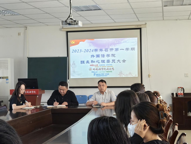 为进一步加强我院心理健康教育工作的实施,更好地构建学生心理健康保护屏障,及时了解同学们的心理健康需求,提升心理委员的工作能力,10月18日中午,在我院八栋三楼会议室召开了2023-2024学年第一学期班长和心理委员大会,外国语学院吴孔宝书记、辅导员王雨濛和李发俊老师亲临现场指导。