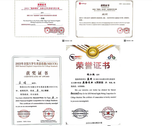 她也积极参加学科知识竞赛,通过实操不断提高表达能力、学习能力和创新能力。曾获2022全国大学生英语作文大赛全国二等奖、2023年全国大学生英语竞赛B类二等奖、2021年全国大学生英语词汇竞赛决赛全国三等奖、2021《英语世界》杯全国大学生英语写作大赛全国三等奖、2022年《英语世界》杯全国大学生英语词汇大赛全国三等奖等奖项。孟琦同学通过实践经历启示我院学子要把理论知识融会贯通并应用于实践中,不断提高独立思考、创新创造和解决实际问题的能力,为成为社会需要的人才做准备。
