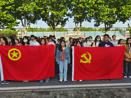 清晨七点,在和煦的阳光下,国旗班身姿挺拔,步伐铿锵,护送国旗入场。伴随激昂的《义勇军进行曲》,旗手振臂一挥,鲜艳的五星红旗冉冉升起,迎风飘扬。全体成员齐唱国歌,行注目礼。随后,在学生党员毛安琳的带领下,全体学生党员重温入党誓词,重忆入党初心。在誓词的洗礼下,广大党员将牢记“我将无我,不负人民”的誓言,践行使命担当,永葆初心本色,汇聚“听党话,跟党走,感党恩”的磅礴力量,以更加饱满的热情和担当投身于新时代建设中去。